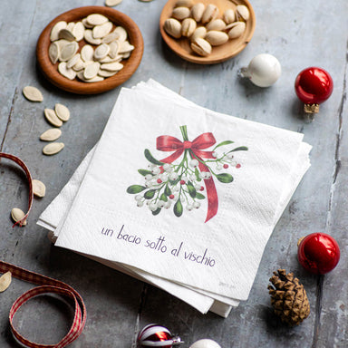 Set 20 tovaglioli in carta Un bacio sotto al vischio. Porta un tocco di originalità con questi tovaglioli in carta 33 x 33 cm. Perfetti per aggiung...