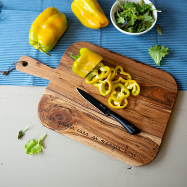 Tagliere casa decoro In questa casa si mangia bene dim. 23 x 30 cm Un aperitivo sensazionale da fare a casa o anche solo presentare i tuoi antipas...