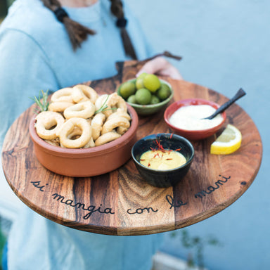Tagliere tondo decoro Si mangia con le mani Un aperitivo sensazionale da fare a casa o anche solo presentare i tuoi antipasti o assaggi Dimension...