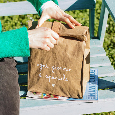 Porta-pranzo in fibra di cellulosa decoro Ogni giorno è speciale dim. 22 x 15 x h36 cm Rendi uniche le tue pause pranzo con il nostro accessorio d...